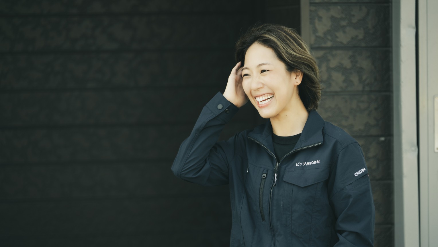 まず、経験なくても、女性でも、全然大丈夫です!私も未経験からでしたけど、最初は先輩がしっかりついて教えてくれるので大丈夫です。職人の世界って怖そうなイメージあるかもしれないけど、ビップは違います。わからないことがあればちゃんと聞けるし、手取り足取り教えてくれる。ほんと、イメージ変わると思います。現場に入るのも、いつも教えてくれる方と一緒なので安心ですよ。入る前は不安でも、入ってみたら分かる。私も、最初は不安だったけど今では毎日会社行くのが楽しみです。女性だとやっぱり力の差とかを気にしちゃうと思うんですけど、迷っている人は一回話を聞きに来てほしいですね。パワーをもらえる会社ですよ!