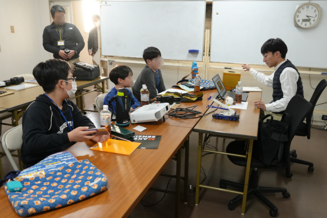 まずは座学からスタート。 「鉄筋ってどんな役割があるの?」という疑問に対し、街づくりの土台を支える重要性を説明しました。 子どもたちは真剣そのもの 。普段見ることがないクレーンの種類や材料の話に、身を乗り出して質問する場面もあり、にぎやかな幕開けとなりました。