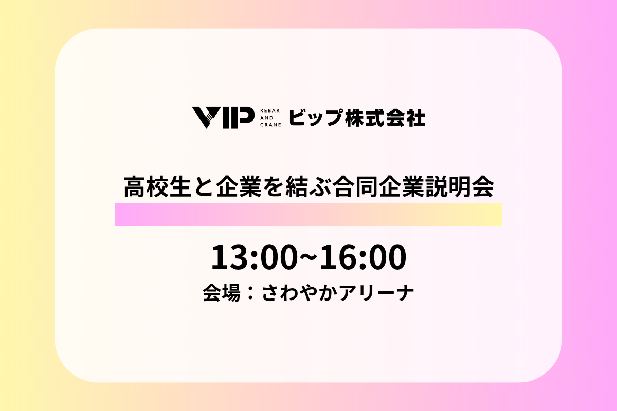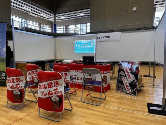 磐田市・袋井市が主催する本イベントは、地元で働きたい高校生と企業が直接話せる貴重な場。約70社が集結する中、ビップのブースは今年も熱気に包まれました。おかげさまで、説明会は全6回すべてにご着席いただけるという大盛況! 特に印象的だったのは、建設業界や鉄筋工事に興味を持ってくれる女子生徒さんが多かったこと。性別を問わず「技術を身につけるカッコよさ」に関心を寄せていただけたことが、何よりの収穫でした。公式キャラクターの「ビッパーくん」も大活躍!足を止めてくれる子が多く、プレゼントした特製ステッカーも大好評のうちに終了しました。