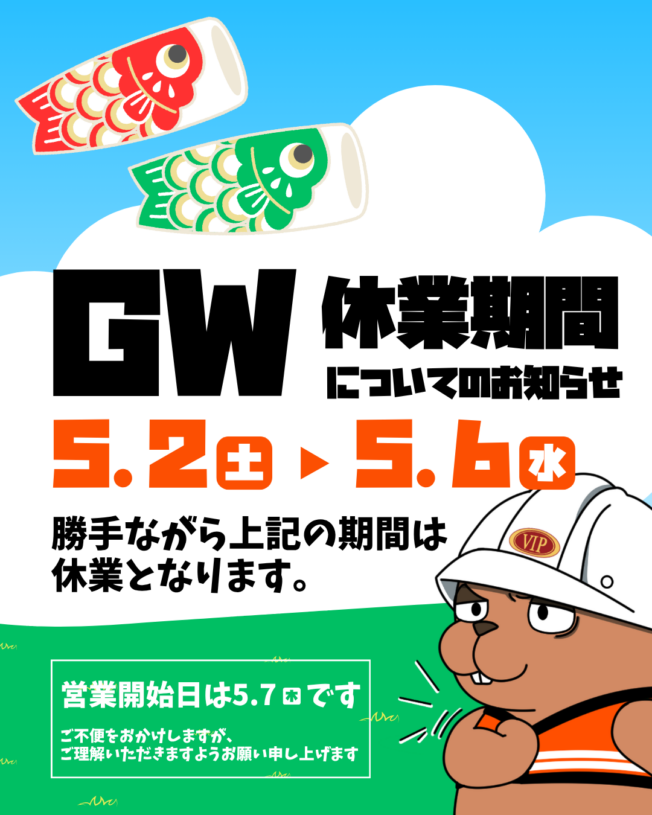 いつも大変お世話になっております。 ビップ株式会社より、ゴールデンウィーク期間中の営業スケジュールをご案内いたします。